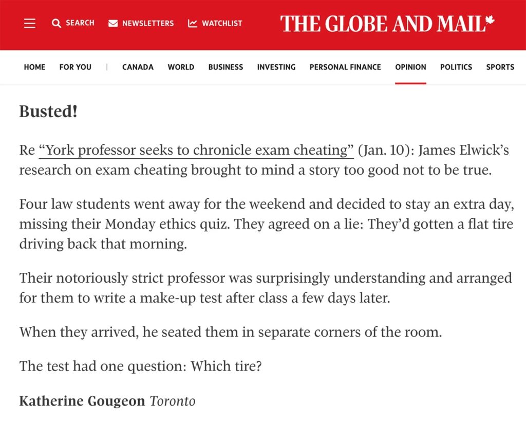 My latest letter, as seen in the weekend edition of The Globe and Mail.
